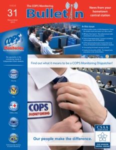 Fire PERS 2-Way Security Video Environmental, Process, & Custom Monitoring The COPS Monitoring We specialize in the monitoring needs of independent alarm dealers. News from your hometown central station I S S U E 31 November 2015 In this issue What qualities make a COPS Dispatcher? Read the details inside and watch our video online. MPower Your Search: This enhancement adds convenience and saves you time. Tired of reprogramming? Conquer sunsetting technologies with AES IntelliNet. COPS adds industry leader IControl One to its lineup of interactive services available to dealers. How paying it forward can pay you back. Explore the benefits of ESA: The largest trade association in the United States. Find out what it means to be a COPS Monitoring Dispatcher!