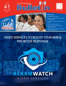 The COPS Monitoring In this issue ALARMWATCH Video Services Reduce false dispatches by 67% with eCancel & MYALARM.CHAT You might be using POTS in your Third Party Services Improving notifications with SMS What you need to know about new ANSI Standard TMA-AVS-01 SYNERGY Conference: A new experience that will benefit your business! I S S U E 41 March / April 2023 VIDEO SERVICES TO BOOST YOUR RMR & PRIORITIZE RESPONSE READ ONLINE